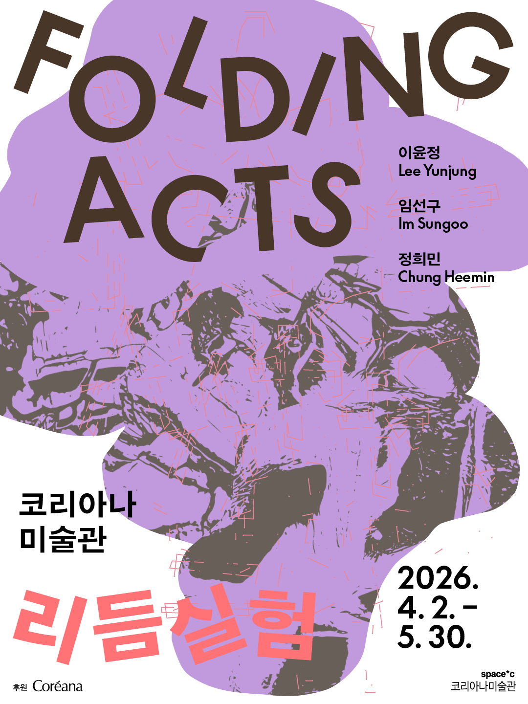 코리아나미술관은 2026년 상반기 기획전 《Folding Acts: 리듬실험》을 개최합니다. 《Folding Acts: 리듬실험》은 코리아나미술관의 다원예술 프로그램 *c-lab 9.0의 주제 '실험실로서의 미술관(Museum as Laboratory)'이라는 문제의식에서 출발한 기획전입니다. 이번 전시는 미술관을 전시 공간이 아닌 몸의 사유가 끊임없이 생성되는 실험의 현장으로 바라봅니다. 이윤정, 임선구, 정희민 3인의 작가는 드로잉, 회화, 설치, 영상, 퍼포먼스를 통해 몸과 이미지 그리고 물질이 서로를 어떻게 변형시키고 작동하게 만드는지 탐색합니다. 오프닝 리셉션은 4월 2일(목) 오후 5시부터 8시까지 진행되며, 5시부터 전시 투어가, 6시 30분에는 이윤정 작가의 퍼포먼스 〈씨씨씨 SeeSEASee〉가 진행될 예정이니 많은 관심과 참여 바랍니다.