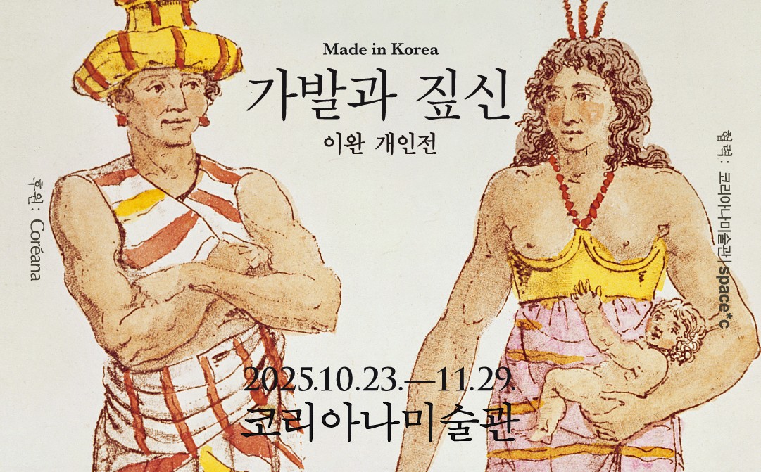 ■ 전시제목 이완 개인전《Made in Korea 가발과 짚신》 ■ 전시기간 2025. 10. 23. – 11. 29. ■ 전시장소 코리아나미술관 ■ 참여작가 이완 ■ 관람시간 (화–금) 11:00–18:00 / (토) 12:00–18:00 ■ 관람요금 성인 6,000원 / 학생 4,000원 (박물관 통합권: 성인 10,000원 / 학생 7,000원)
