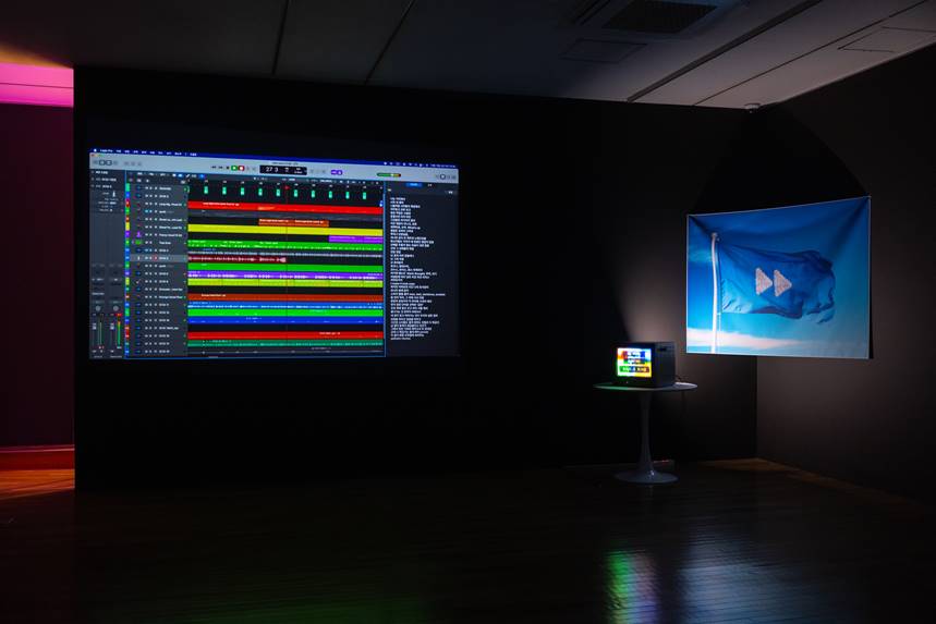 *c-lab 9.0 프로젝트 〈BE KIND, REWIND, DOUBLE BIND〉는 미셸 공드리(Michel Gondry)의 영화 〈비 카인드 리와인드 Be Kind Rewind〉(2008)에서 제목을 차용했다. 영화는 주인공이 운영하는 비디오 대여점에서 우연한 사고가 발생해 비디오 테이프의 데이터가 모두 삭제되면서 시작된다. 주인공은 어쩔 수 없이 조악한 장비로 영화를 다시 촬영한다. 원본을 대체한 것은 뻔뻔하고 엉성한 상상력뿐이지만, 주인공의 영화는 사람들의 호응을 얻는다. 힙합을 비평적 오브제로 재맥락화하는 작업을 선보여온 안광휘는 영화 속 사건을 한국 사회가 서구의 미술사와 힙합 문화를 수용해온 과정과 겹쳐본다. 흑인이 향유하던 거리 음악을 한국의 중산층 문화로, 그리고 다시 예술의 언어로 번역한 이 작업은 ‘가짜’와 ‘무근본’ 사이를 오가는 이중 구속의 상황을 피할 수 없다. 그러나 〈BE KIND, REWIND, DOUBLE BIND〉는 이 딜레마를 해결하거나 정당화하려 하지 않는다. 오히려 예술 작업을 그러한 조건을 견뎌내는 행위로 바라보며, 가장 거칠고 정치적인 거리의 문화를 가장 정제되고 제도적 공간인 미술관으로 호출한다. 예술의 행정적 절차, 제도를 지탱해온 언어와 형식은 힙합의 리듬과 충돌하며 변형된다. 작가는 그 리듬 안으로 관객을 초대함으로써 예술의 의미와 가치란 무엇인지 주체적으로 질문하도록 유도한다.